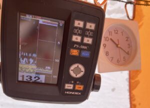 ここだと思ったポイントに魚探を入れると深さ1m…