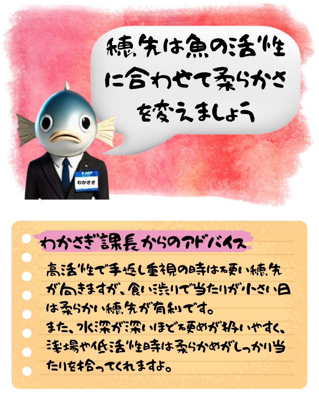 ワカサギの活性、群れの密度、水深やオモリとの相性――これらが重なってアタリの形が変わり、それに応じて最適な穂先の硬さも変化します。状況ごとの“アタリの出方”を読むことができれば、穂先選びは確実に釣果を押し上げる武器になります。