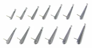 ダイヤモンドシンカー…多面体の美しいキラメキで強いフラッシングを生み出し、落とせばすぐに反応が出る状況で抜群に扱いやすいダイヤモンドシンカー。無鉛素材を採用した環境配慮型で、下バリをセットできるハリス止めも備え、複数竿でテンポよく手返ししたい方に最適な高効率モデルです。 ストライカーシンカー…スレンダーでロングな形状が急速な直落下を実現し、水深のあるボート釣りやドーム船で群れのタナを正確に直撃。湖流の影響を受けにくく、糸絡みや根掛かりなどのトラブルも回避しやすいため、のべ竿での操作性も良好です。高比重の鉛素材を採用し、下バリをセットできるハリス止めも備えた実用性の高いシンカーです。 |