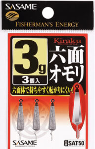 夜光オモリ…鬼楽六面オモリに夜光塗のオモリが追加!魚探に映りまた簡単に下鈎が交換できます。パープルグローは明るすぎない紫の光でアピール。 ノーマルオモリ…持ちやすく転がりにくい6面体、下鈎用ハリス止め付き。 寄せフック…本体のフックに寄せ効果のあるエサを付けて、オモリ周りにワカサギを寄せる。オモリと寄せエサが同時に動くので、寄せ効果バツグン! タングステンシンカー…タングステンシンカーで、スムーズな沈下&巻き上げで転がりにくい。 |